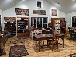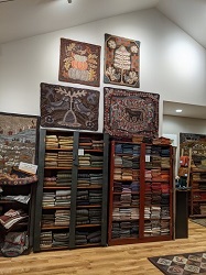 | The obsession has taken over! You are welcome to visit the studio to see over 1000 yards of yummy hand-dyed and washed wool, hooks, patterns and many of my finished rugs as well as lots of other goodies for rug hooking and wool applique. Because of traveling to teach, the studio is open by appointment only. Please contact me if you are interested in visiting or attending one of the workshops listed in the Classes & Events section. |