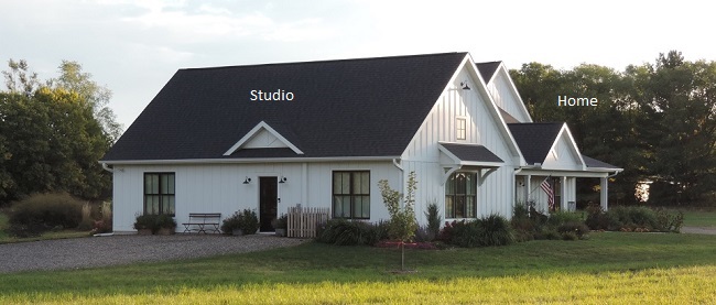 We live in our new home/studio in Lake City Minnesota among the beautiful bluffs near the Mississippi River. The light and bright studio is attached to the home. There is a separate driveway and entrance to the studio around the corner on Levi Path. It is wonderful to share this happy place by offering more workshops at home. After years of traveling all across the country it is nice to be home more but I do still travel for teaching and vending.